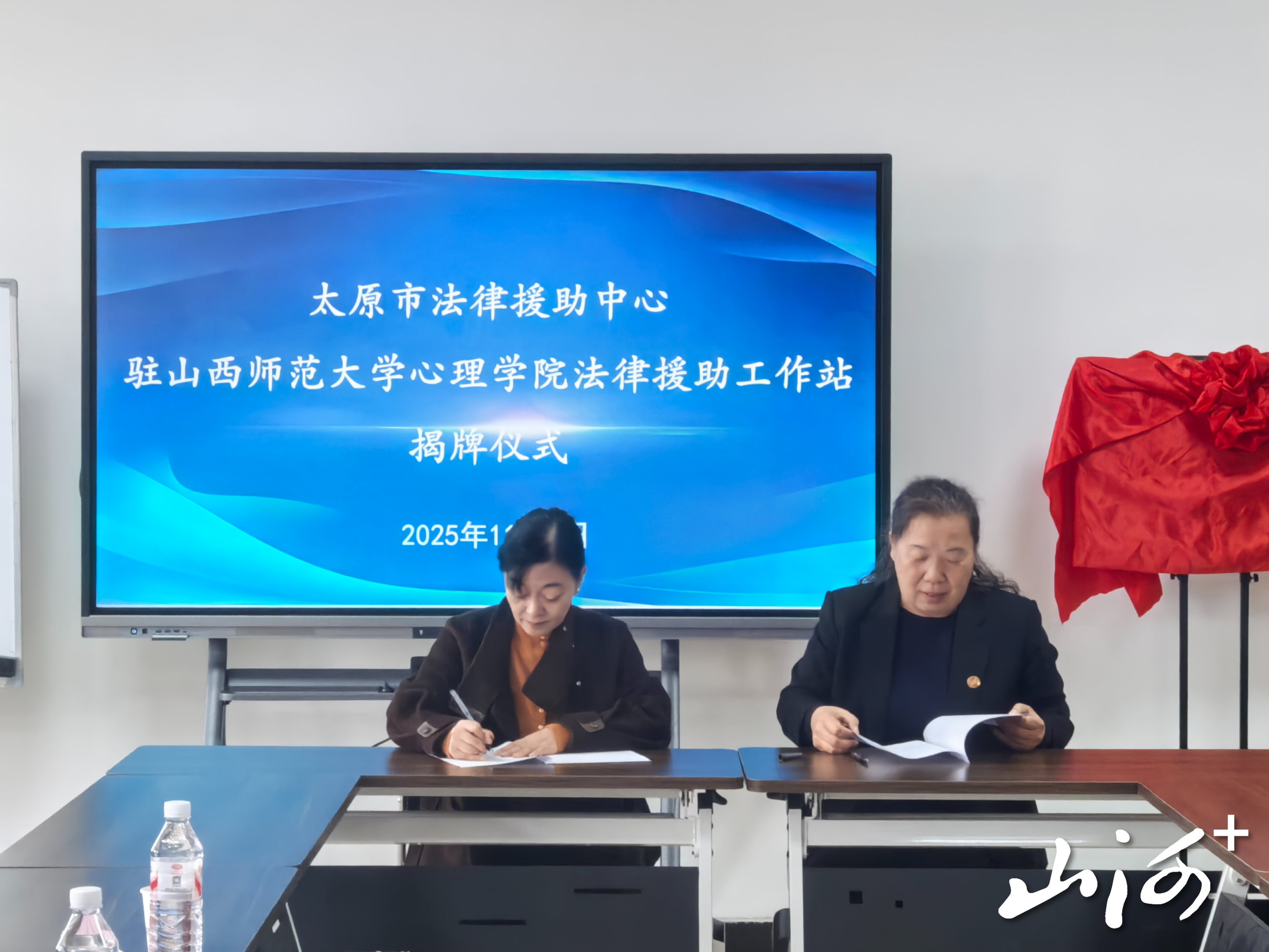山西晚报·山河+讯 11月6日上午,“山西师范大学法律援助工作站”揭牌仪式在山西师范大学心理学院举行。太原市法律援助中心主任赵云红、山西师范大学心理学院党委书记许国宝、院长张潮等领导出席仪式,双方签署合作协议并为工作站揭牌,标志着校地合作在法治建设领域取得新进展。
