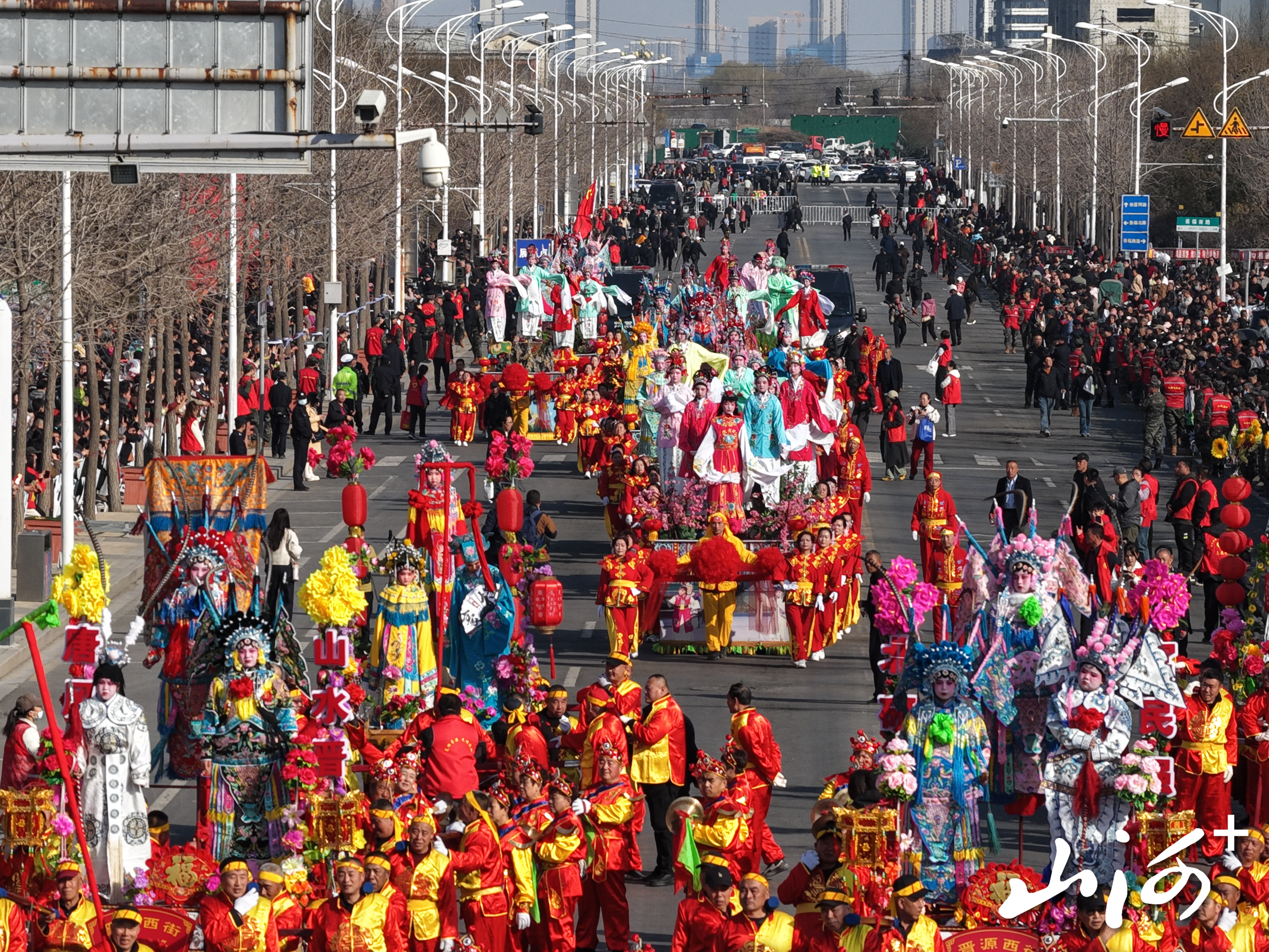 春分恰逢龙抬头,晋阳民俗醉春风。下午3时整,晋源区贞观街上人头攒动、欢声如潮。首声晋阳锣鼓轰然炸响,如惊雷破空、春雷滚地,鼓手们红绸飞扬、鼓槌翻飞,身姿刚劲、气势如虹。鼓点时而雄浑沉厚似山岳镇地,时而激越奔涌如万马奔腾,铙钹齐鸣、锣声震天,声震长街、撼动人心,敲出33万晋源儿女听党话、跟党走的坚定信念,擂响全区高质量发展、全方位转型的奋进强音。