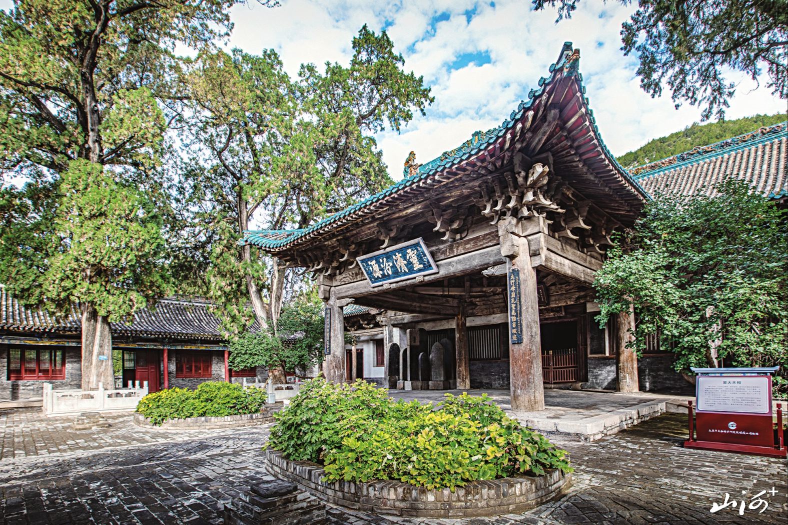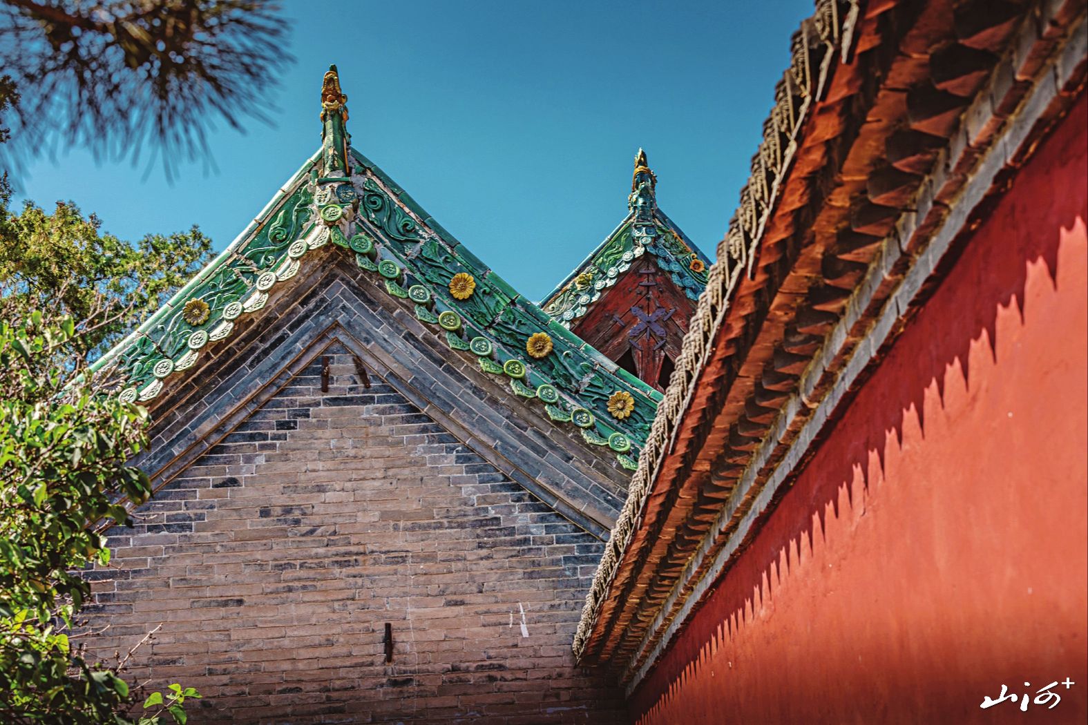 南殿(山门)面阔五间,为单檐悬山顶明代遗构,两侧内墙明三暗五结构,山门两侧镶元代琉璃团龙。