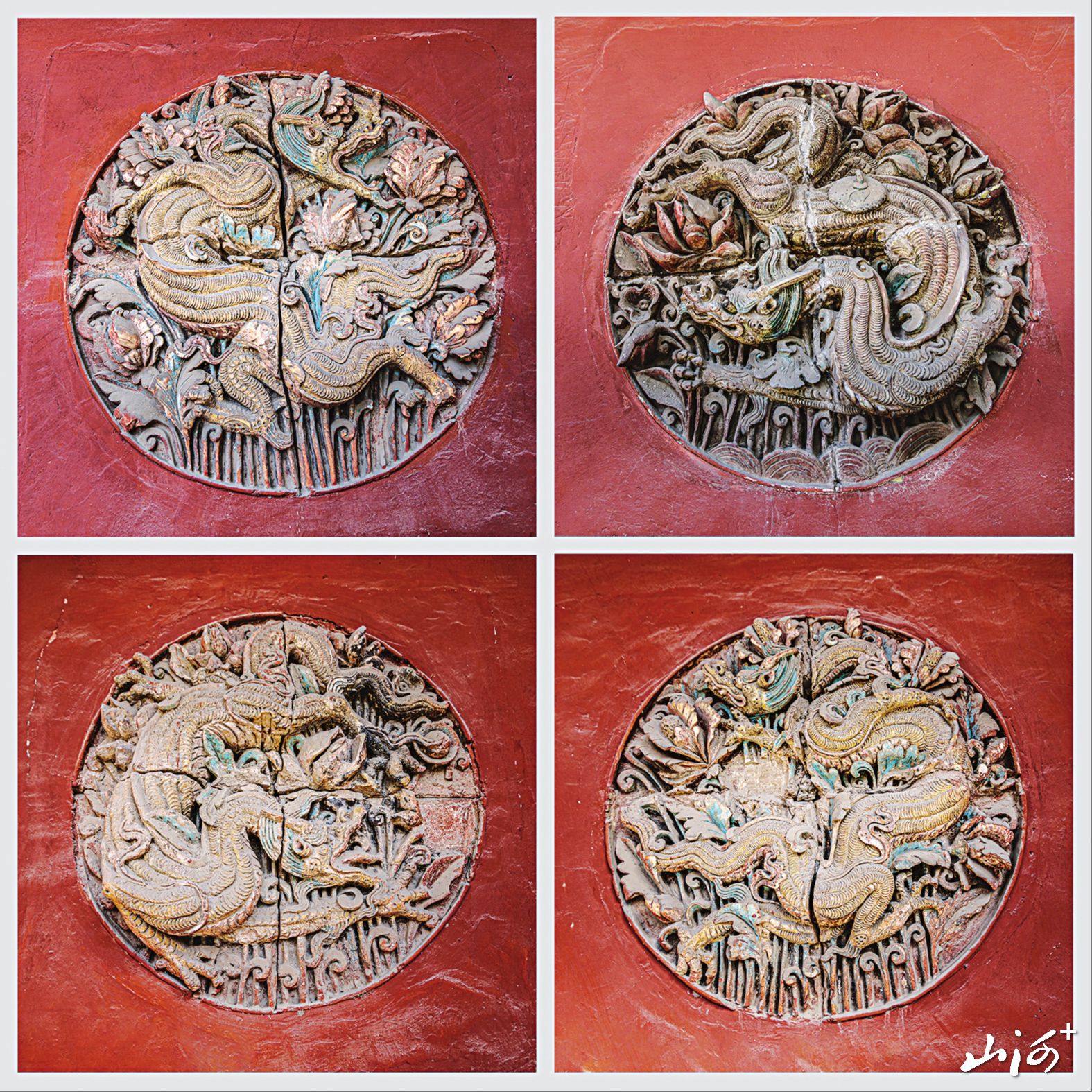 山门两侧内墙镶嵌元代琉璃团龙,雕工精细,虽有切割修补痕迹,但灵动依旧。