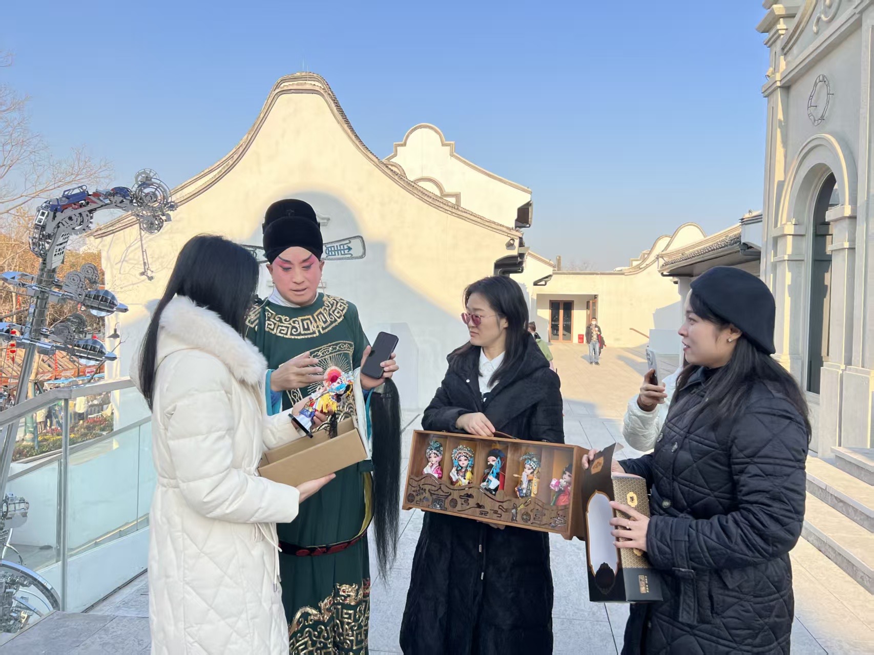 在无锡市二泉映月博物馆旁的露天舞台上,上党梆子省级非遗代表性传承人、山西省戏剧“杏花表演奖”获得者陈树涛,青年演员陈华带来了经典唱段。铿锵有力的唱腔与江南水乡的柔美背景形成了鲜明对比,却又奇妙地融为一体。许多无锡游客第一次现场聆听上党梆子,被这种来自山西的古老艺术深深吸引。