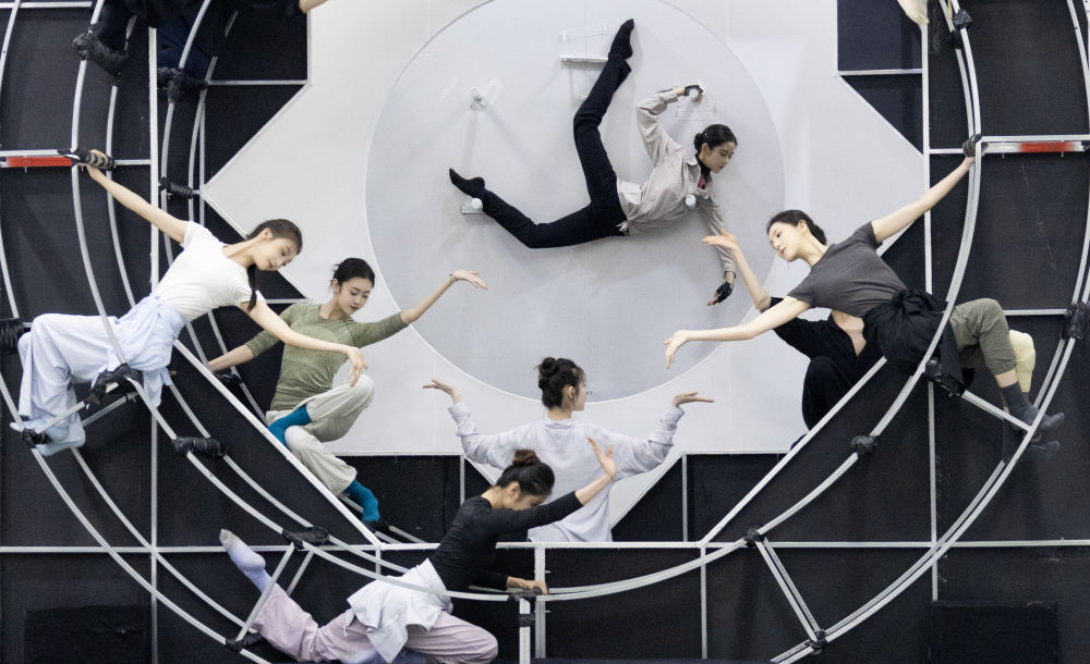 这是舞剧《永乐未央》中《璇玑万象》段落的排练现场(2025年7月16日摄)。