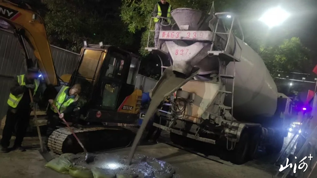 10月26日,工程正式启动。施工人员开挖路面后发现,因长期渗漏,管道下方已形成深约两米的地下空洞,导致供水、燃气管线悬空,险情进一步升级。保障一所立即协同相关管线单位制定应急抢修方案,采用混凝土回填加固空洞,有效托举并稳固悬空管线,及时化解险情。