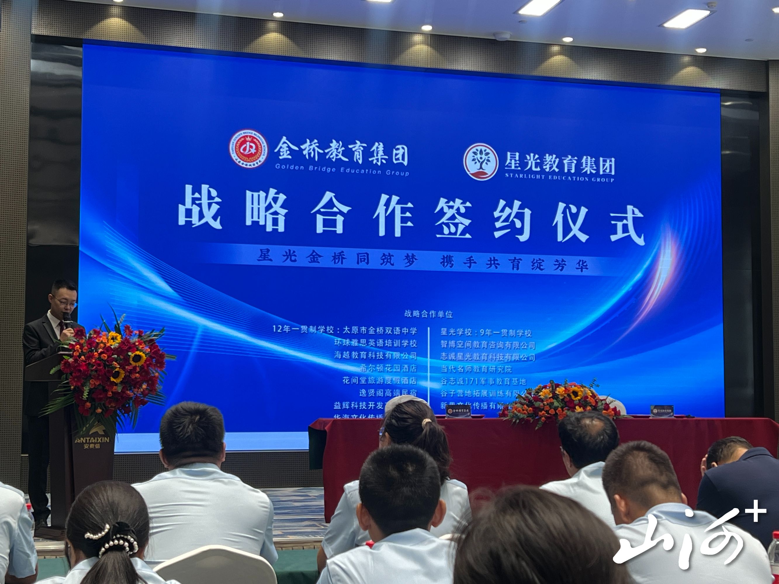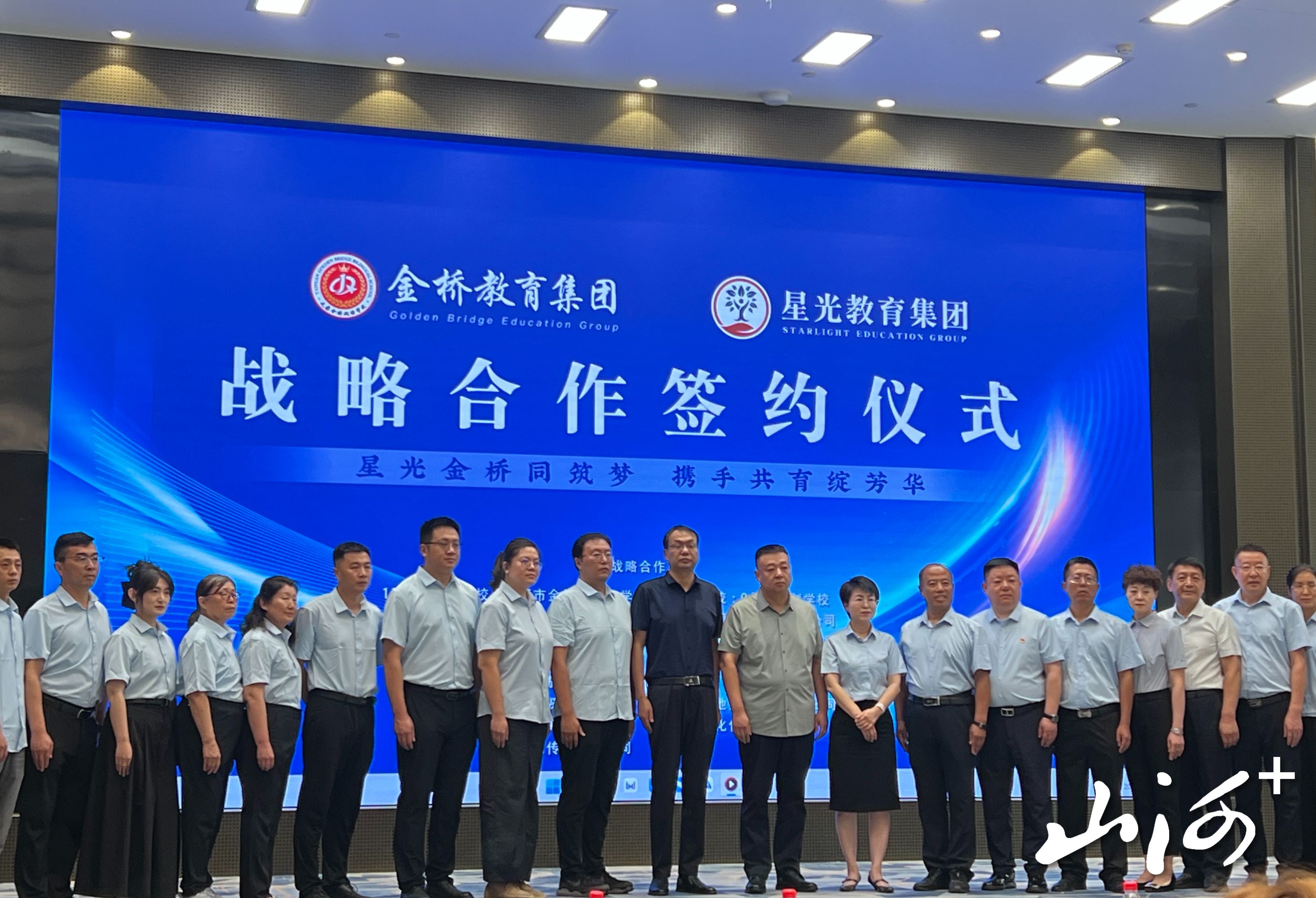 山西晚报·山河+讯 2025年8月15日上午,在教育改革深化与山西经济转型发展的关键时期,金桥教育集团与星光教育集团正式宣布达成全方位战略合作。此次合作聚焦教育、文旅及文化传播三大核心领域,标志着双方将通过资源整合、优势互补,开启共谋高质量发展的新篇章。