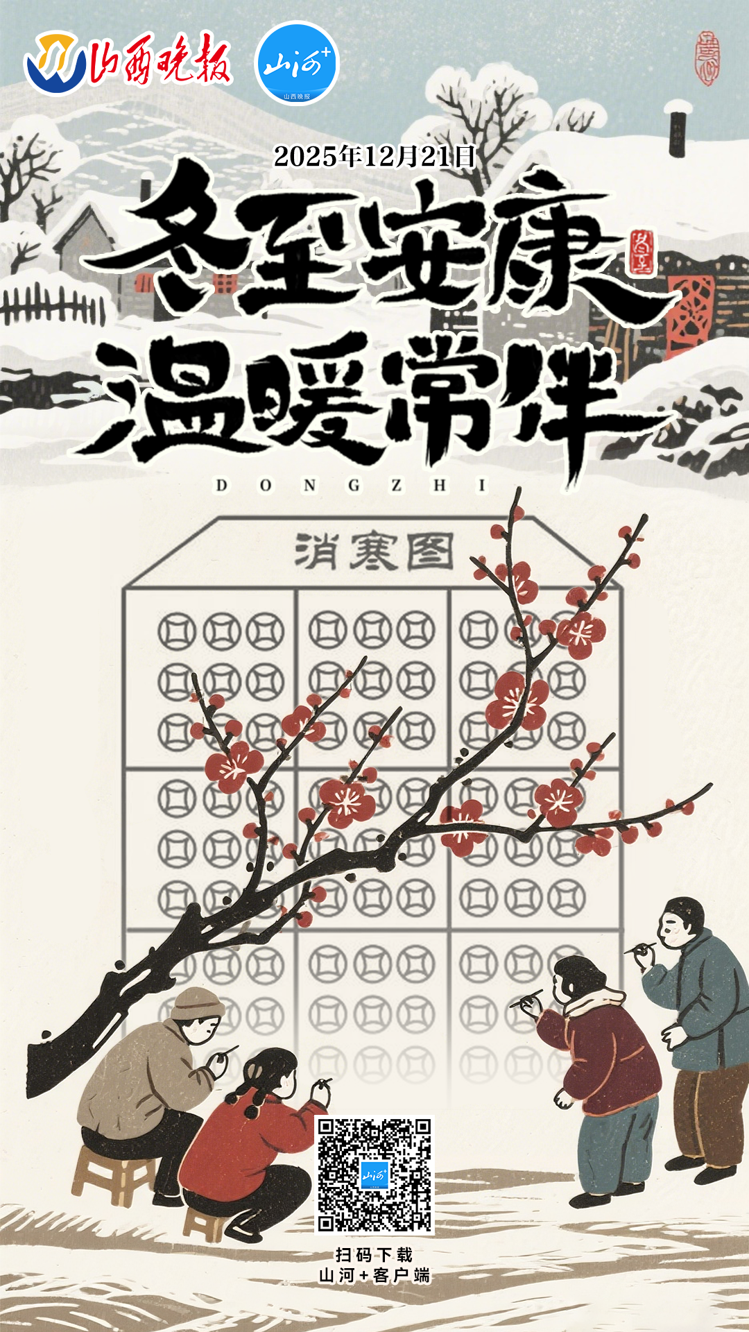 2. 数九消寒:从冬至起,人们开始“数九”,通过填画《九九消寒图》(如“亭前垂柳珍重待春风”九字,每字九划)或绘制“九九消寒梅花图”等方式,雅致地记录冬日的流逝,期盼春归。