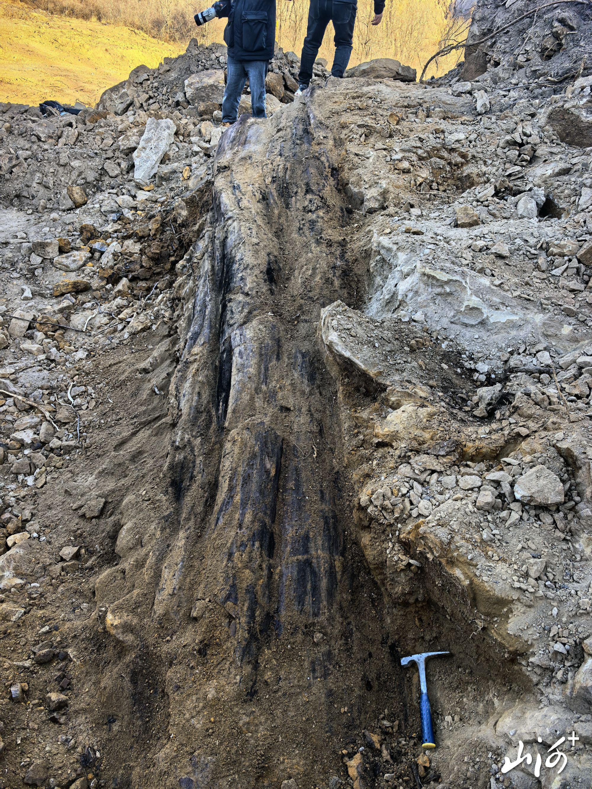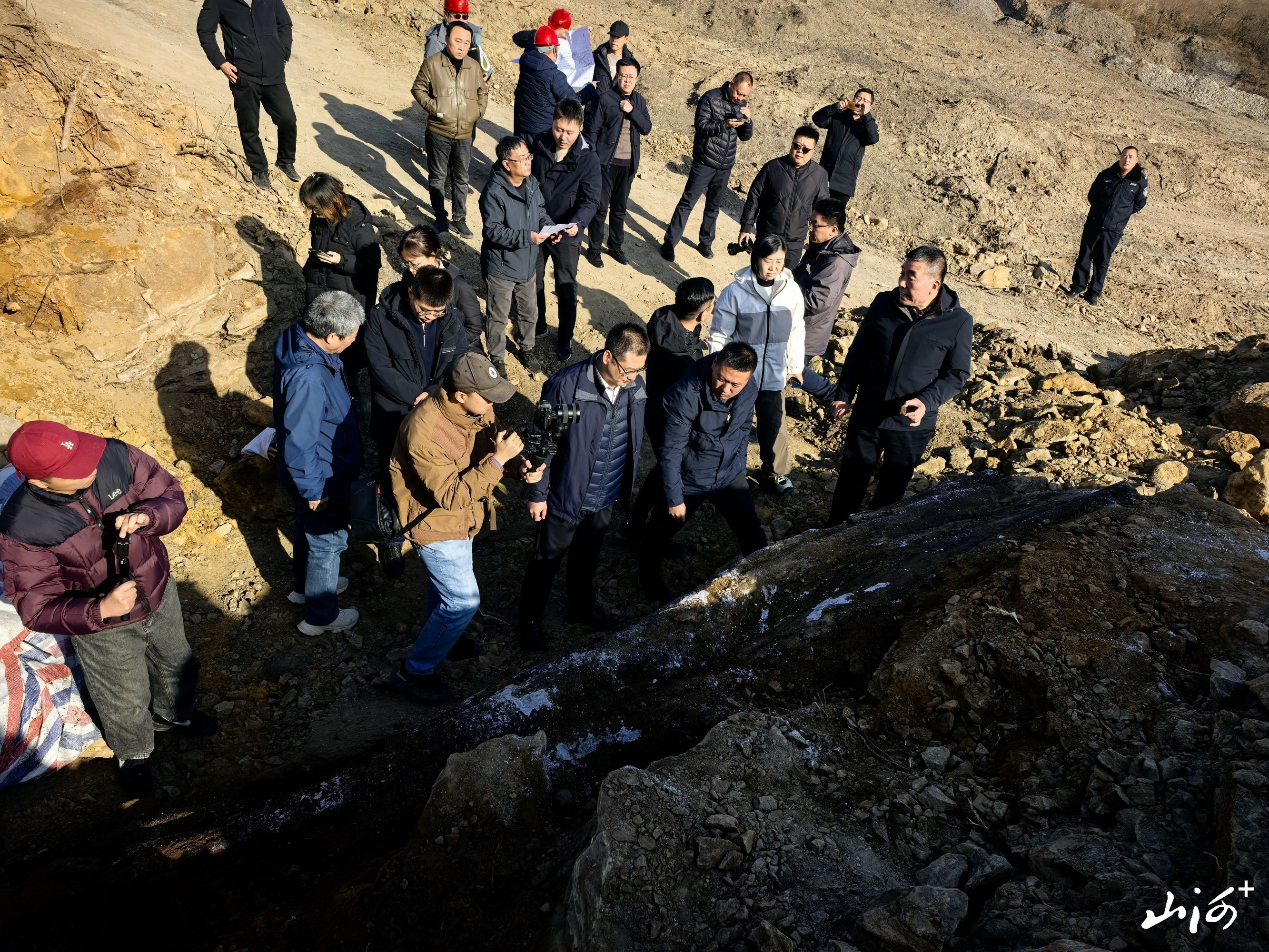 山西晚报·山河+讯 12月8日,在阳泉市平定县庙沟村附近的太旧高速公路改线工程的某处工地上,来自省自然资源厅、阳泉市规划和自然资源局、平定县自然资源局的省市县级专家齐聚一起,现场勘察一处新发现的国家一级重点保护古生物化石——大型木化石。此次发现是平定县境内首次发现的大型木化石,也是阳泉市首次在山西组地层中发现直径达1米的木化石。