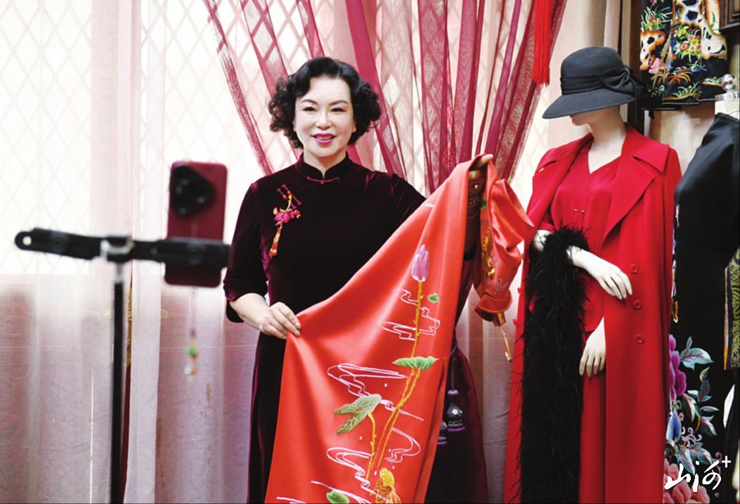 平日里,婆媳分工默契:潘俊杰负责接待、打理事务,并亲自参与画图、刺绣;黄麓熹则专心研发文创新品,将传统纹样与手工技艺融入日常物件,让非遗美学走进生活场景。她们还积极拥抱新媒体,在抖音平台积累了十多万粉丝。潘俊杰既是主播也是原创设计师,用短视频让更多人看见旗袍的美。