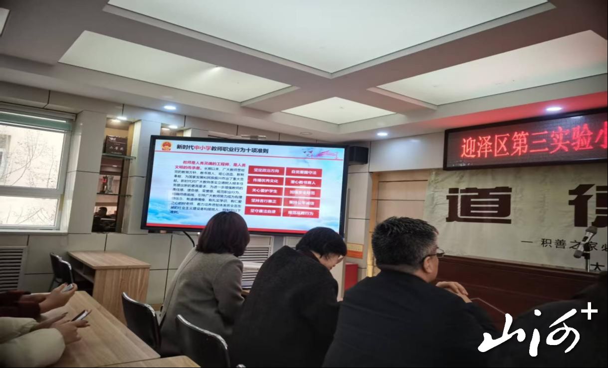 山西晚报·山河+讯 3月1日,太原市迎泽区第三实验小学校组织全体教职工开展《新时代中小学教师职业行为十项准则》专题学习会,聚焦师德师风建设,明确职业行为规范,为新学期教育教学工作筑牢思想根基。