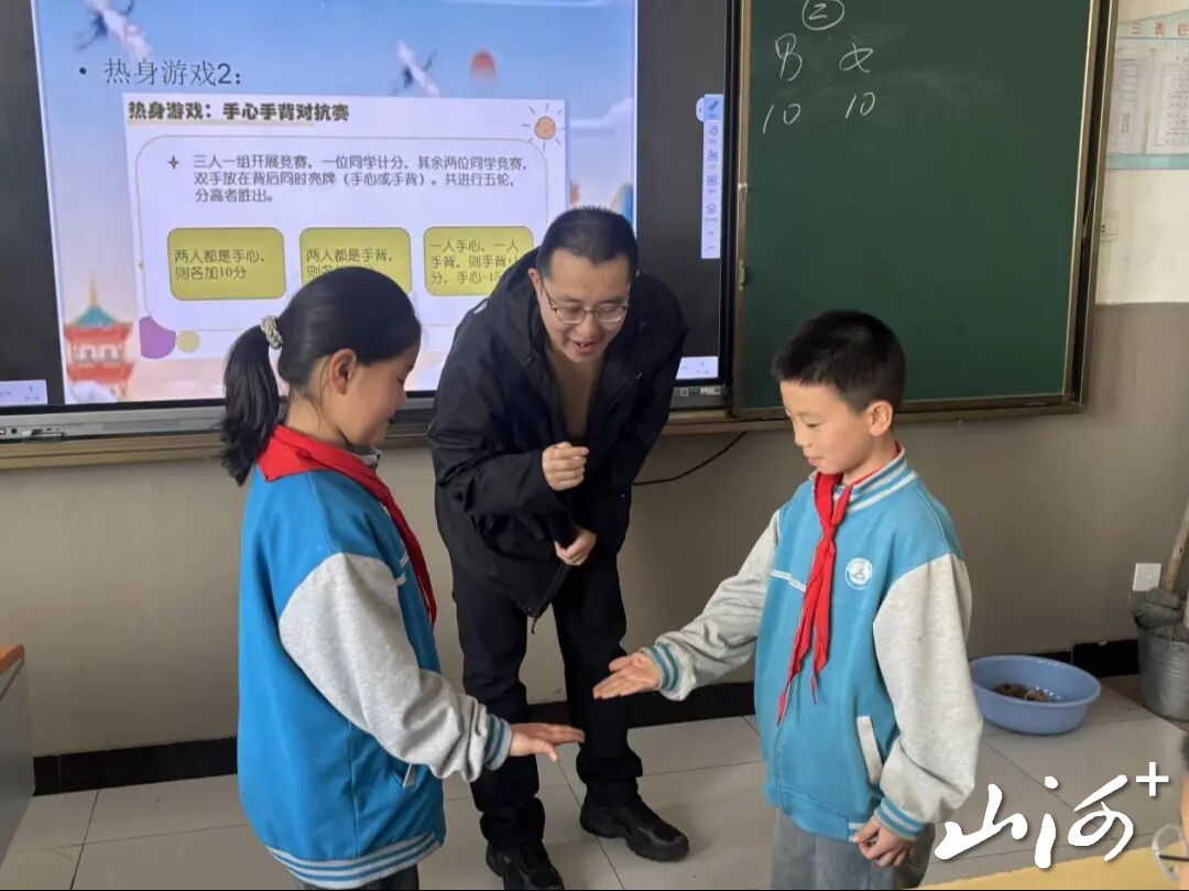紧接着的“手心手背对抗赛”成为课堂亮点。4组同学依次上台演练,过程中既有默契配合的合作,也有意见不合的争执,不同小组的表现也折射出不同的合作水平。分享环节,同学们纷纷表达感悟:“想赢就要和伙伴好好合作,一起变得更好,自己一个人拼不仅做不好,还会让大家都不开心。”