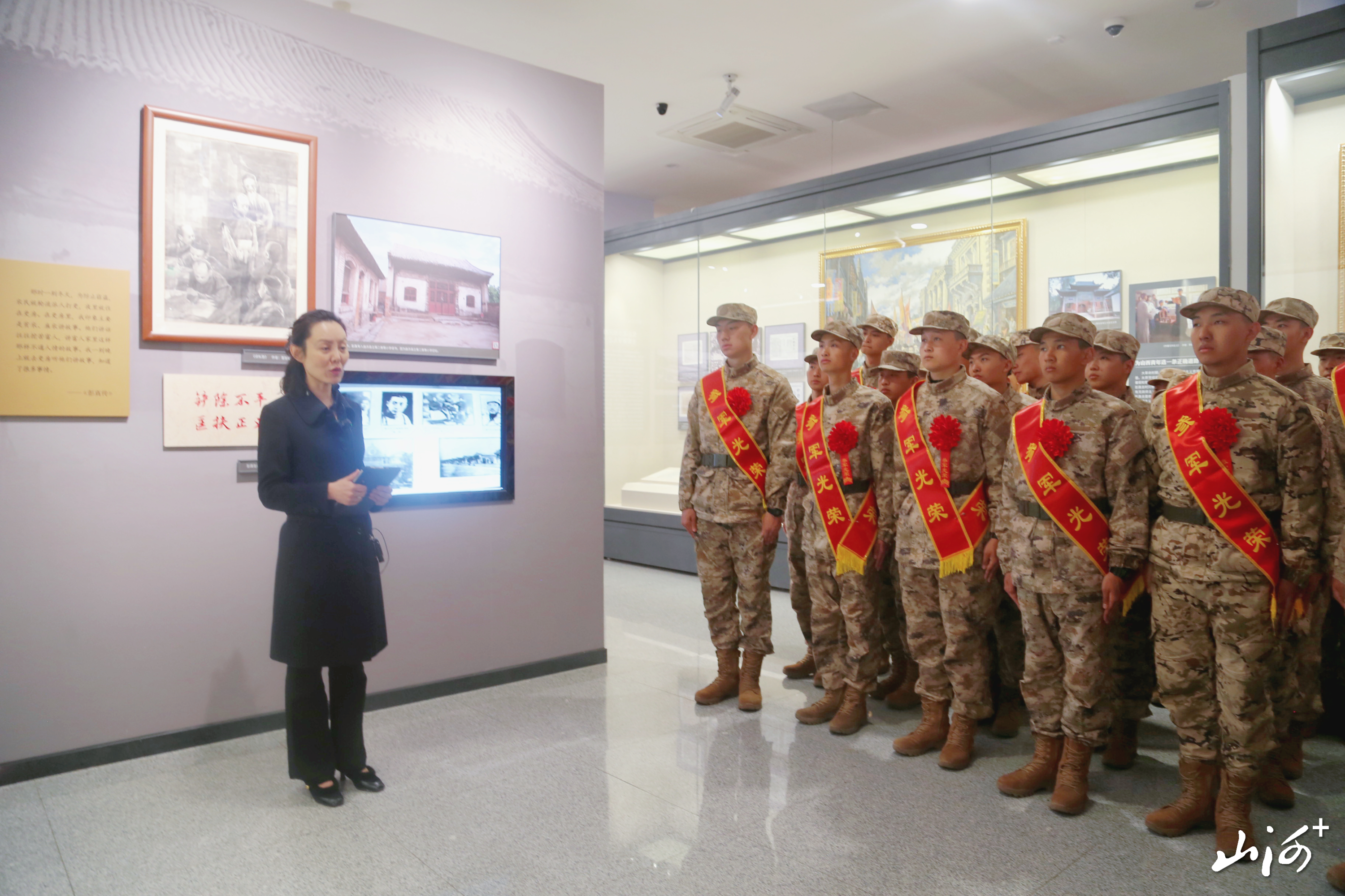 欢送大会结束后,全体新兵前往彭真纪念馆开展入伍宣誓与参观学习活动。在纪念馆广场,新兵们面对军旗庄严宣誓,进一步坚定从军报国的初心使命。随后,在讲解员的带领下,新兵们参观了彭真同志生平事迹展,通过珍贵文物、历史照片与生动讲解,深刻感悟老一辈无产阶级革命家的革命精神与家国情怀,接受了一场深刻的红色洗礼。大家纷纷表示,将以革命先辈为榜样,传承红色基因,在军营中锤炼过硬本领,为实现党在新时代的强军目标贡献青春力量。