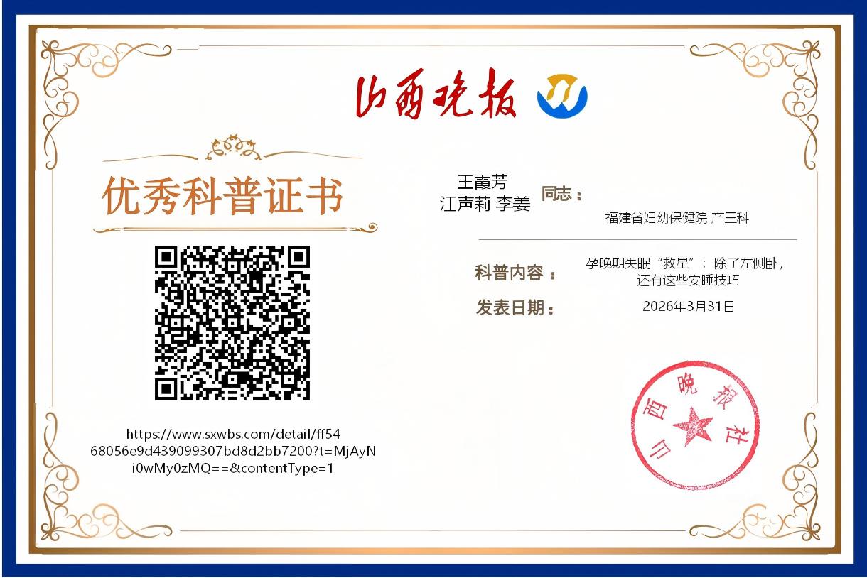 作者:1.福建省妇幼保健院 产三科 王霞芳 江声莉 李姜